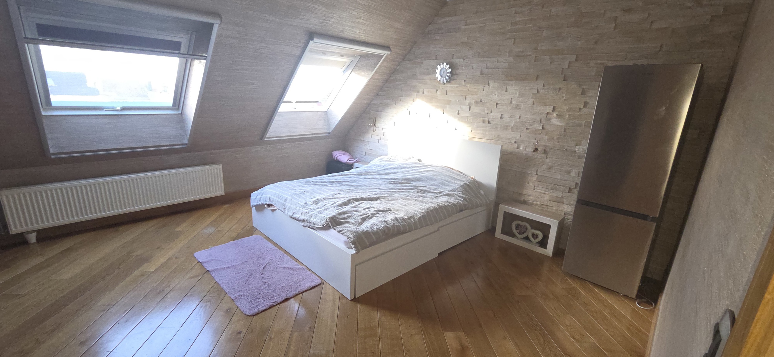 In the NATO-Bordet neighbourhood, a 140 m² duplex flat in a small building from the 2000s with no service charges. This flat comprises, on the second floor: a living room with an open-plan fitted kitchen, two bedrooms, one with a balcony, a separate toilet, and a 7 m² terrace. On the third floor: a very large 24 m² bedroom, a dressing room, a laundry room, a bathroom with bathtub and shower. Ideally located close to transport links, the Ring, the airport, shops, Peb D+, available immediately.