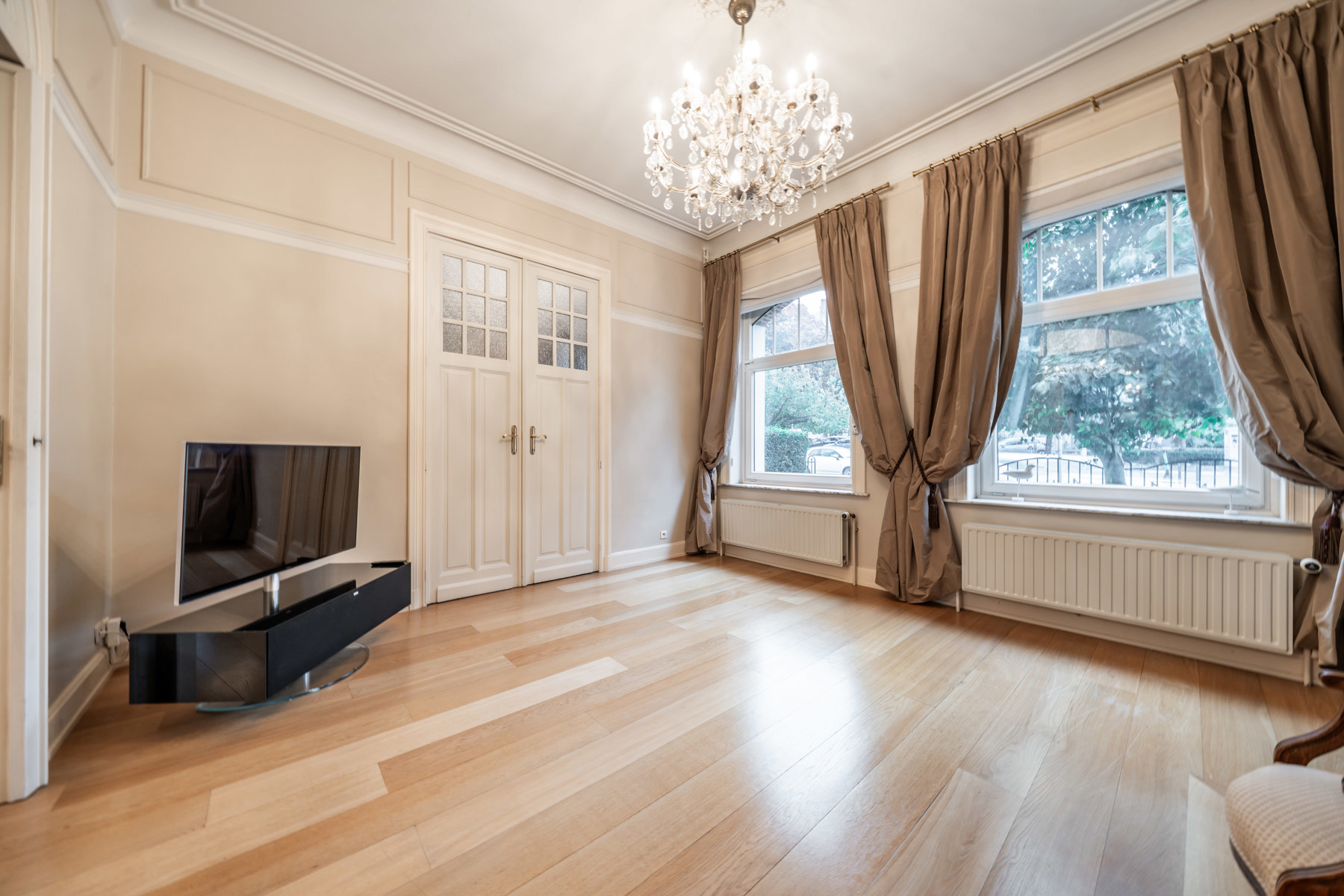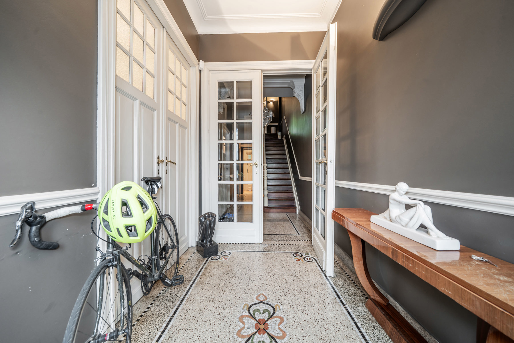Vanaf de inkomhal wordt u meteen betoverd door de hoge plafonds, fijne moulures, marmeren schouwen en originele parketvloeren, die samen zorgen voor een authentieke en unieke sfeer.