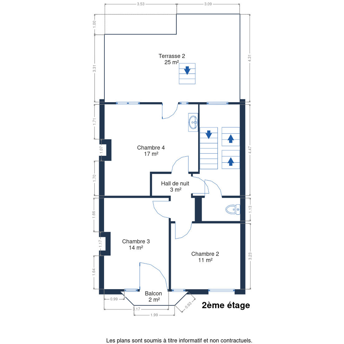 De tweede en derde verdieping omvatten samen vijf bijkomende slaapkamers, een badkamer en een apart toilet, die comfort en privacy bieden aan het hele gezin.